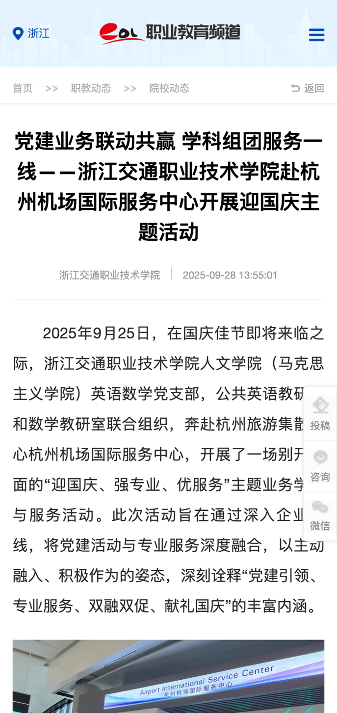 上一条:学习强国:党建业务联动共赢 学科组团服务一线——伟德BETVlCTOR1946赴杭州机场国际服务中心开展迎国庆主题活动