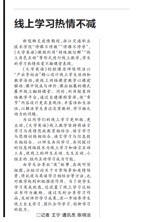 上一条:中国高职高专教育网:探究式多元化在线课堂教学实践,让国学部鲜活起来
