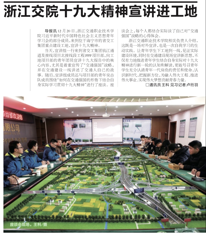 交通旅游导报报道:浙江1946伟德十九大精神宣讲进工地