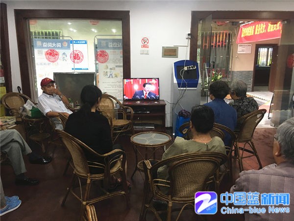 “公益达人”张能庆的银丝坊里 众人利用手机看开幕式