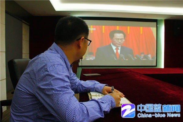 上午九点整,伟德BETVlCTOR1946的党员活动室里早已座无虚席。“开始了,开始了!”随着一声兴奋的提醒,现场的每一个人都低头看向了手机,通过中国蓝新闻客户端,师生们聚精会神的观看起了本次党代会开幕式的网络直播。