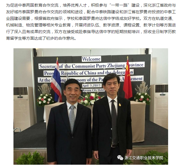 浙江教育报:浙江交通职技院和泰国学校开展教育合作