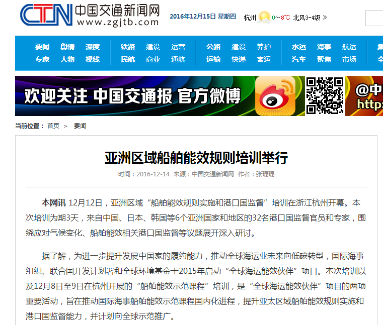 中国交通新闻网:亚洲区域船舶能效规则培训举行