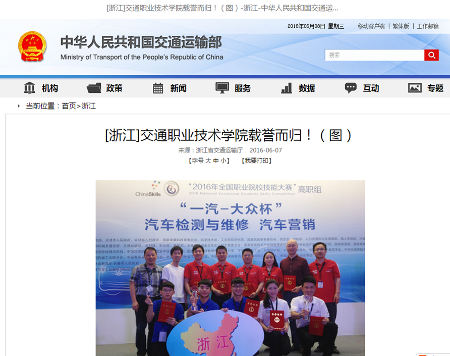 交通运输部:[浙江]交通职业技术学院载誉而归!