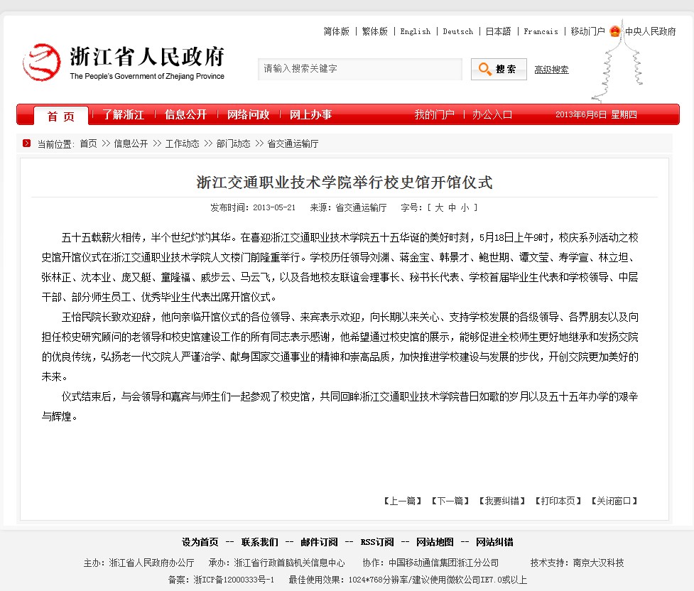 浙江省人民政府网:伟德BETVlCTOR194655周年校庆系列活动之校史馆开馆仪式