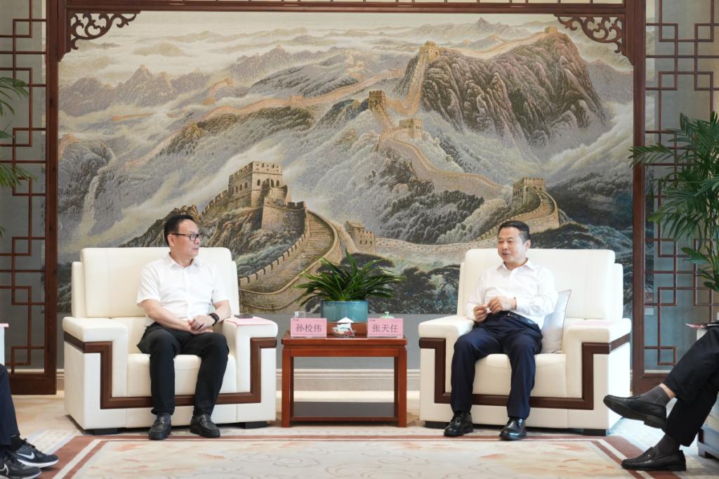 在天能集团文化展馆,调研团详细了解企业在动力电池研发、循环经济体系构建及储能技术应用等领域的卓越成果。座谈会上,天能集团董事长张天任指出,长兴作为工业大县、制造业大县,亟需大量高技能人才。孙校伟书记积极回应,表示学校将依托长兴校区,重点布局新能源、智能制造专业集群,打造产教融合生态,为长兴产业发展输送高素质技术技能人才。