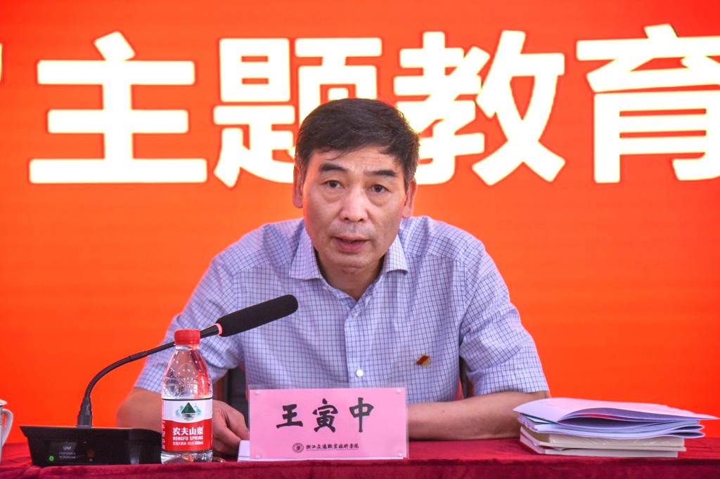 王寅中副厅长在讲话中指出,学校要以主题教育为契机,主动适应发展新形势,积极破解制约学校发展难题,全面推进“双高”建设。并就学校高标准、高质量开展主题教育提出了四项要求:一是紧扣主题主线,坚持学深学透,做到融会贯通、学以致用。要始终聚焦深入学习贯彻习近平新时代中国特色社会主义思想这条主线、紧扣“不忘初心、牢记使命”这个主题,提高政治站位、增强思想自觉、彰显行动担当。二是紧盯检视问题,坚持深挖细查,做到走深走实、真刀真枪。坚持问题导向、效果导向,深挖思想、政治、作风、能力、廉政根源,查实情,拿举措,推动调研成果转化,找准问题症结,理清破解思路。三是紧推整改整治,坚持真抓真改,做到立行立改、应改尽改。重点聚焦抓落实出成效,坚持补齐短板与整治突出问题紧密结合,把“改”字贯穿主题教育始终。四是紧抓管党治党,坚持从严从紧,做到政治生态风清气正。切实推动管党治党责任落细落小落实,切实推动党内政治生活严肃化规范化经常化,切实推动政治生态更清更好更优。